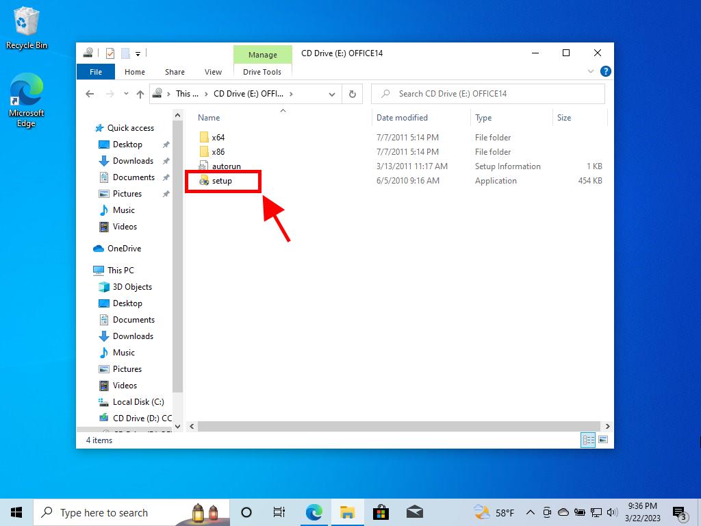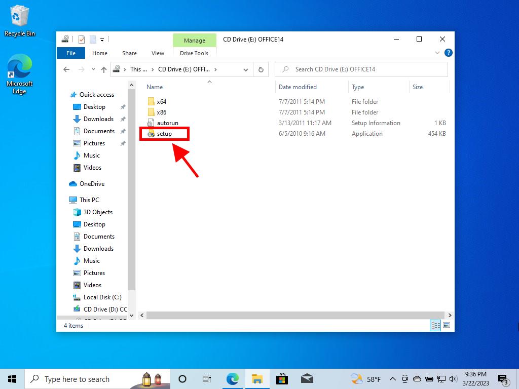 - A window will open, and double-click on the Setup file.