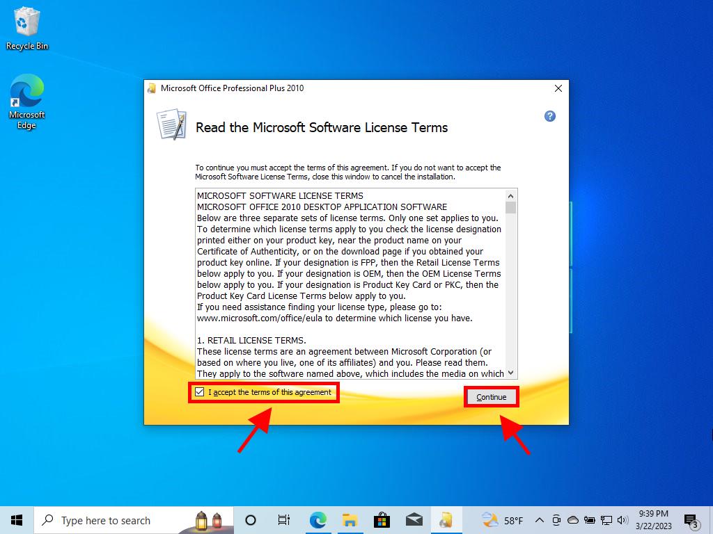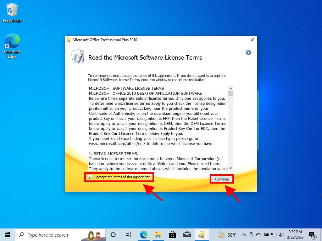 Process to install Office 2010 on Windows 7 and 8