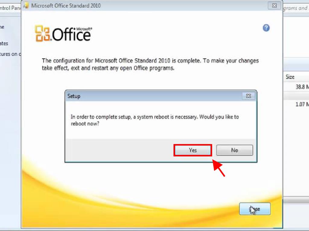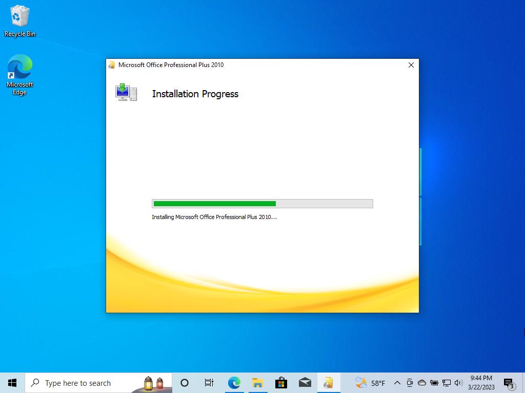 - After restarting your device, you will have Office 2010 installed and activated.