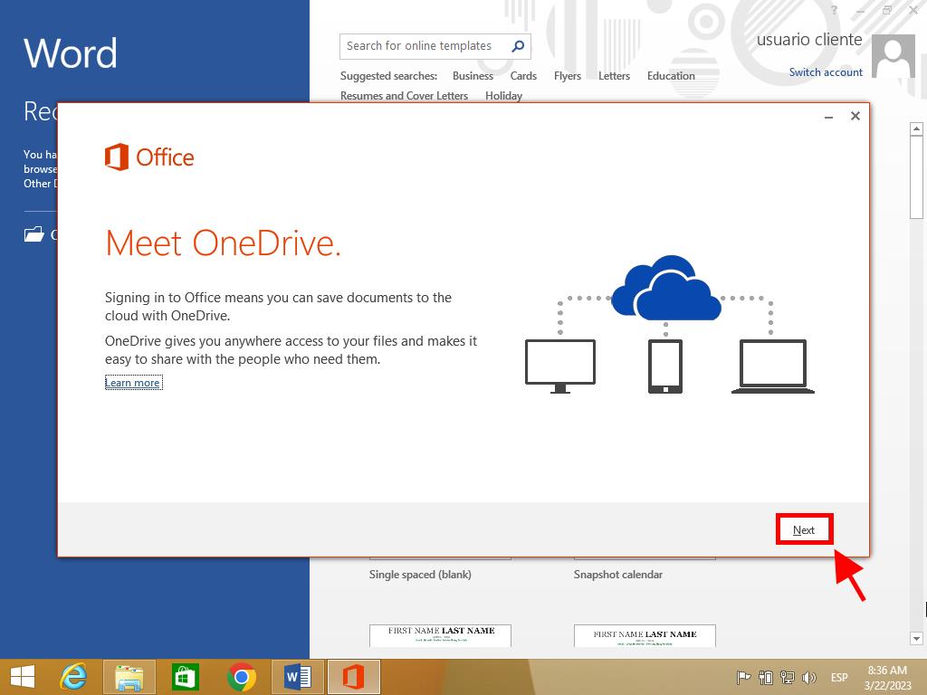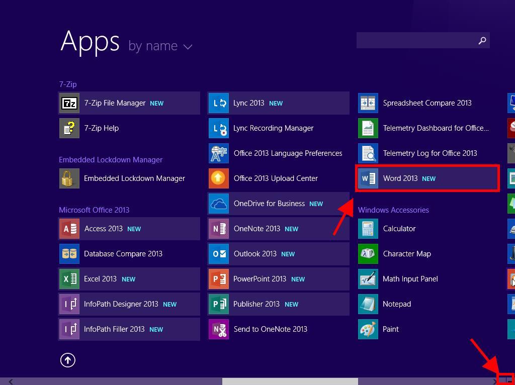 - Look for any Office application (it could be Word, Excel, or another). To do this, scroll to the right of the screen where they will appear.