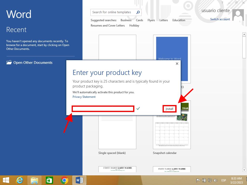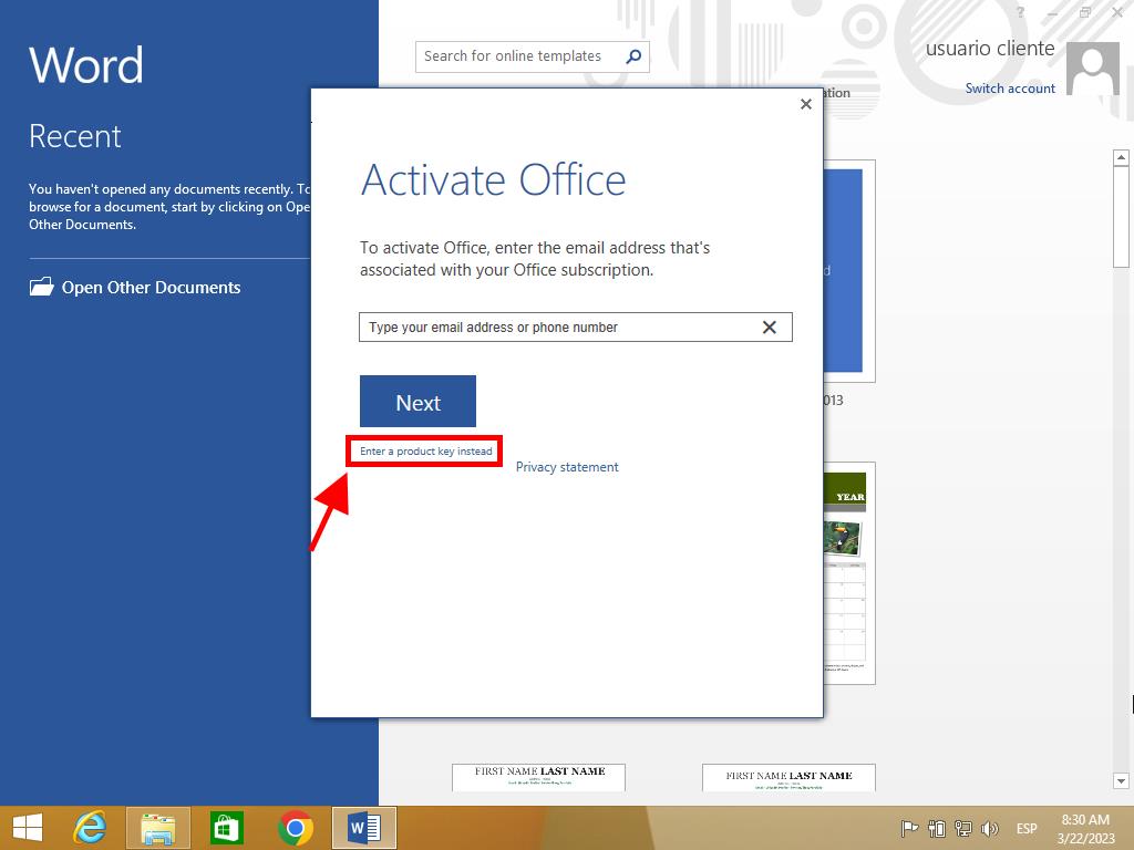 There you will find the product key you need to activate Office 2013. Follow these steps on Windows 8.1:
