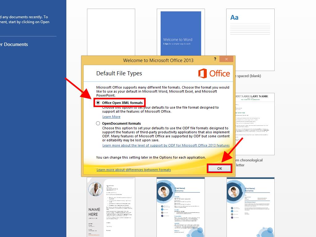 - Next, select Office Open XML formats and click on OK.