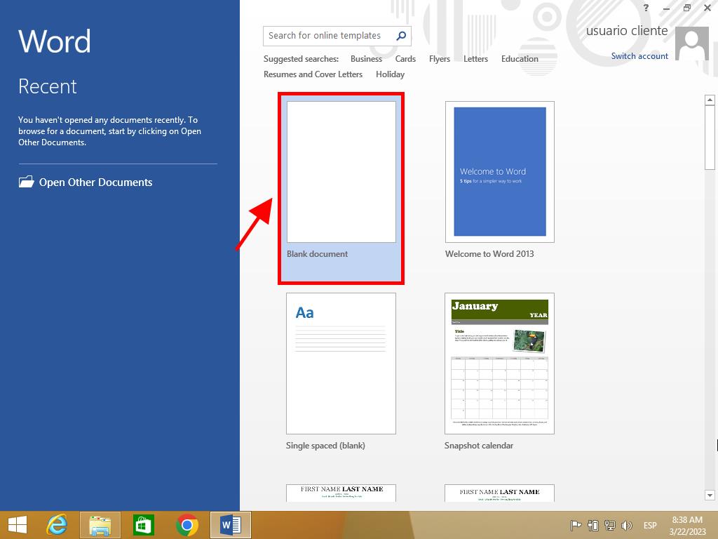 - Next, click on Blank document.