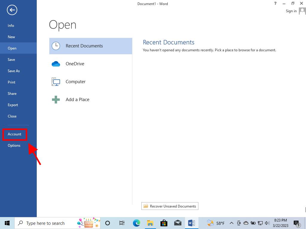 - Now, in the bottom left corner, click on Account.