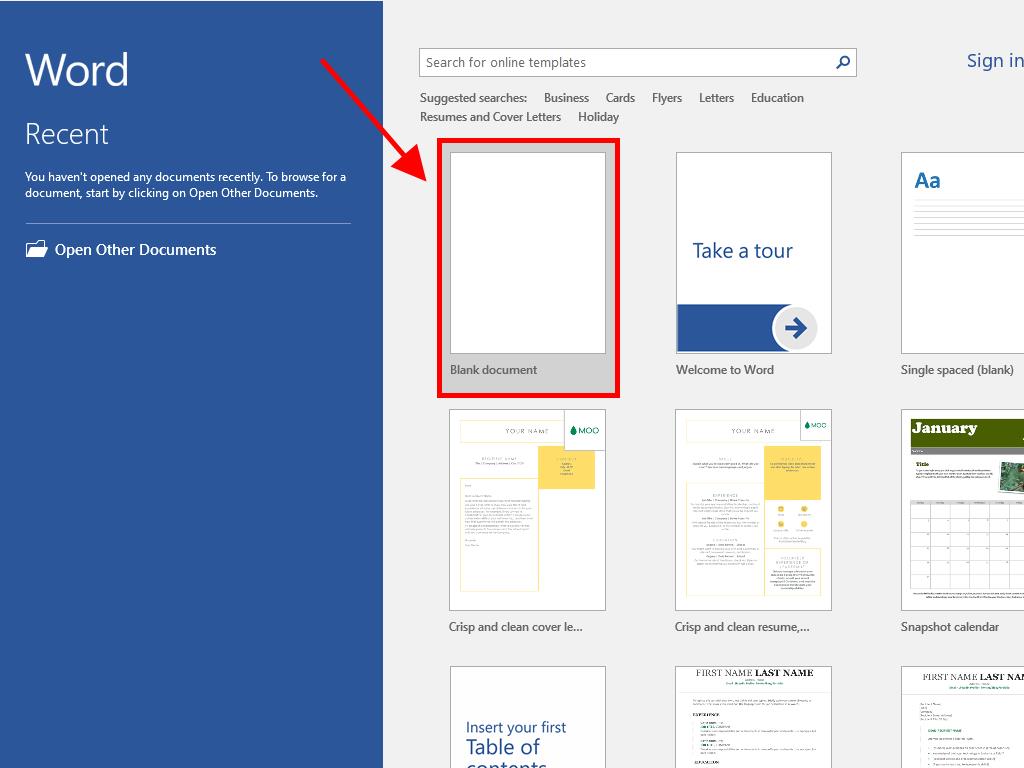 - Check that it has been activated by clicking on Blank Document, located in the top left corner.