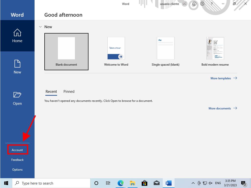 - Check that it has been activated by clicking on Account, located at the bottom right.