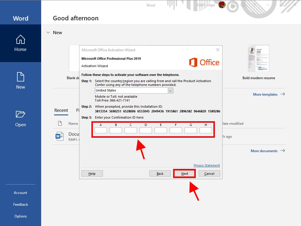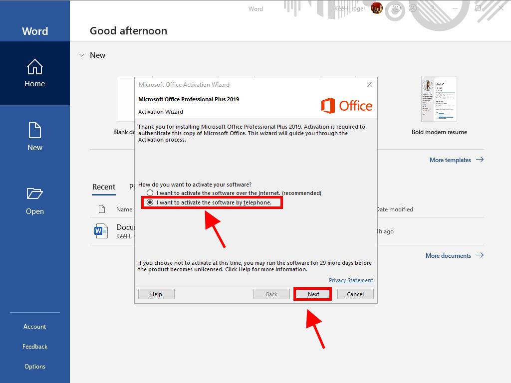 - In the box, choose the option I want to activate the software by telephone and click on Next.
