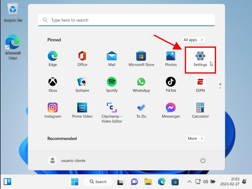 - Select the Settings icon. A list of options will be displayed on the left side.