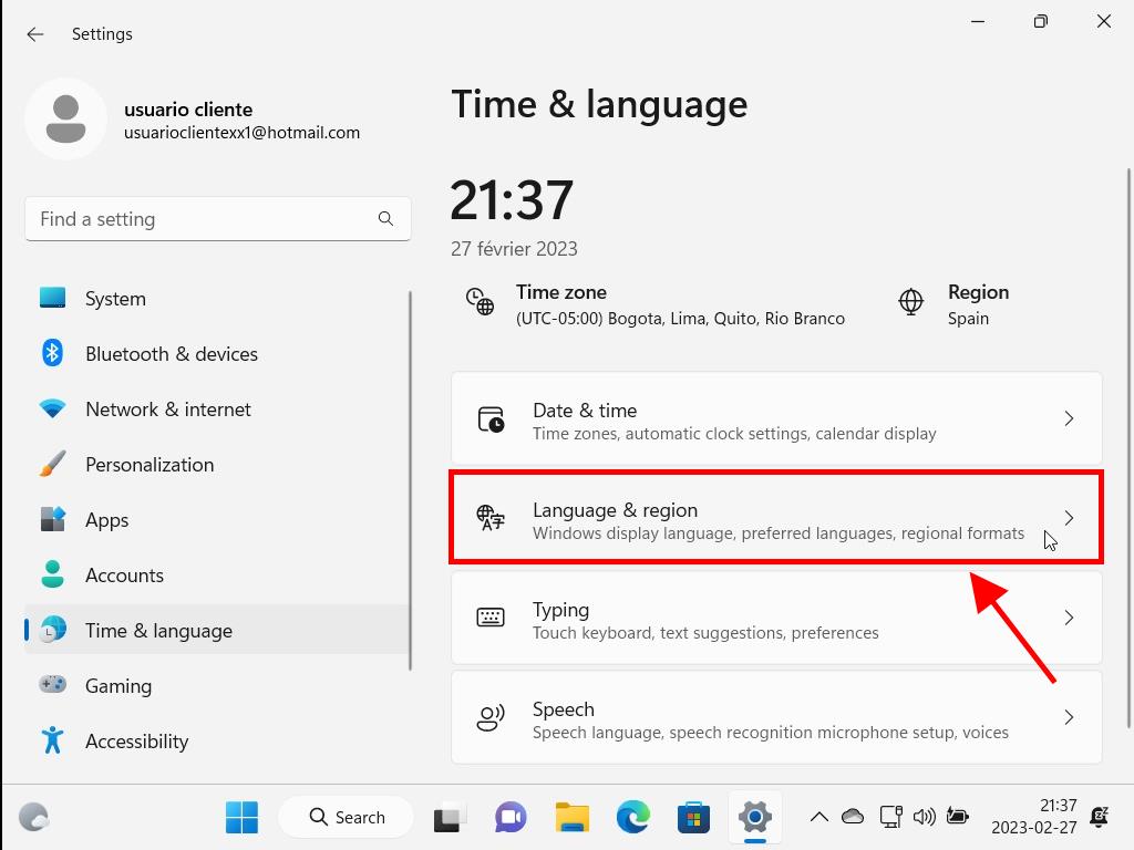 Note: The next time you sign in, your account will use the new language. If there are still certain parts of the system in the previous language, restart the computer.