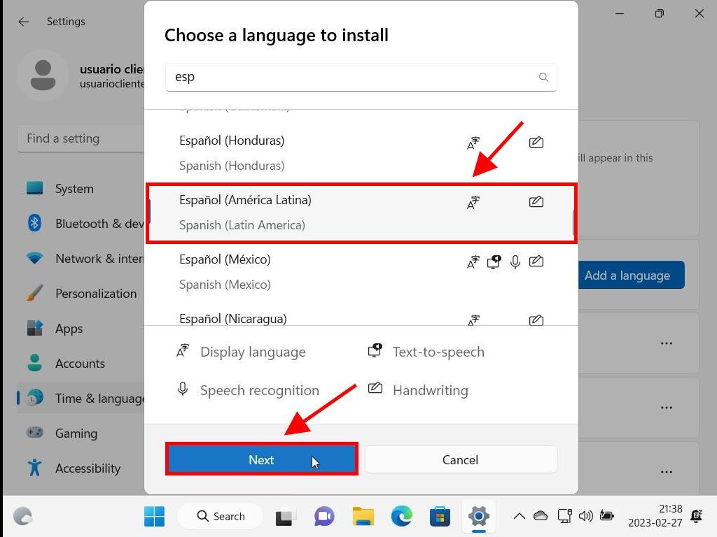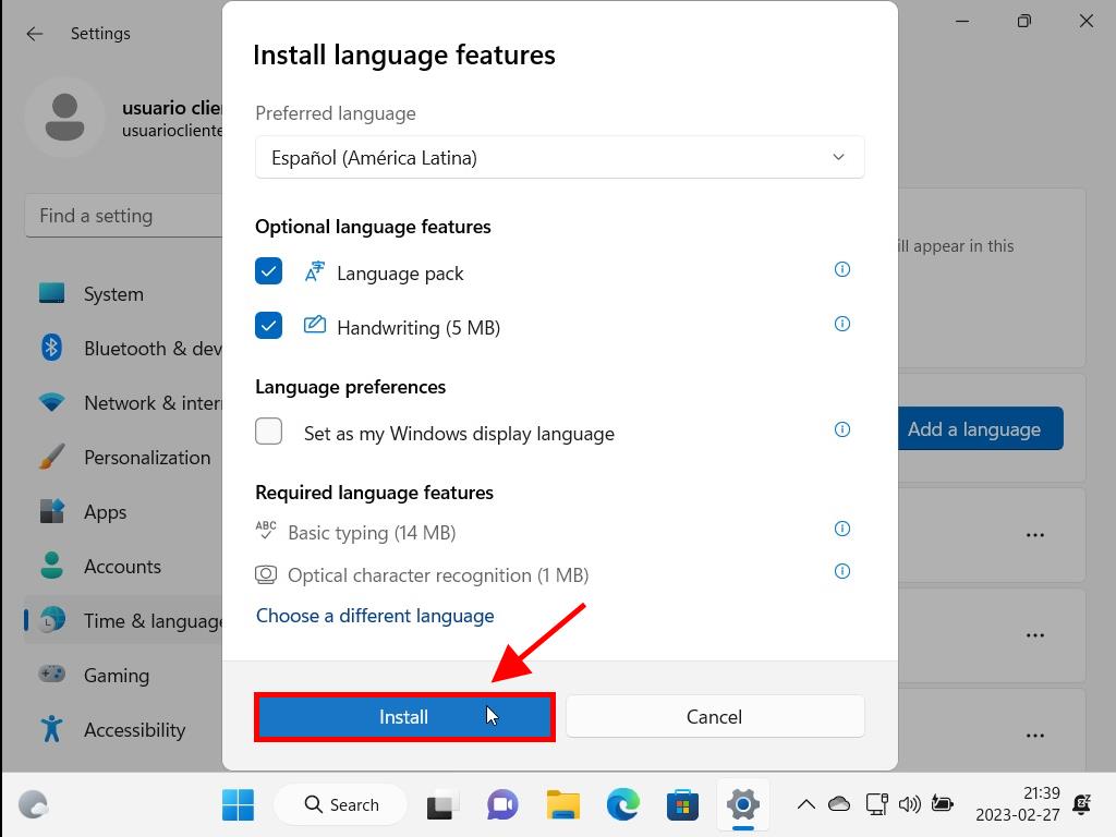 - Click on Install and wait for the language pack to download completely to finish the configuration.