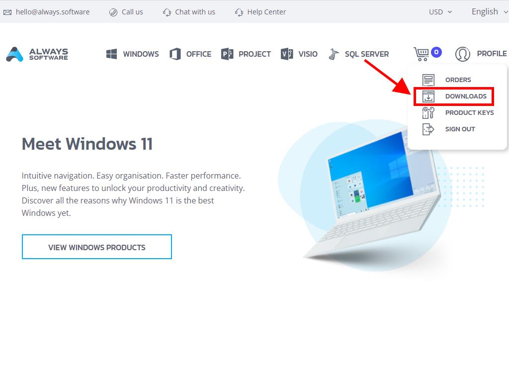 To get your product, go to the section of your account on our website in the top right corner. With the cursor over Profile (without clicking), a drop-down menu will open. Select Downloads and you will be able to see the Windows 11 .iso files available for download.