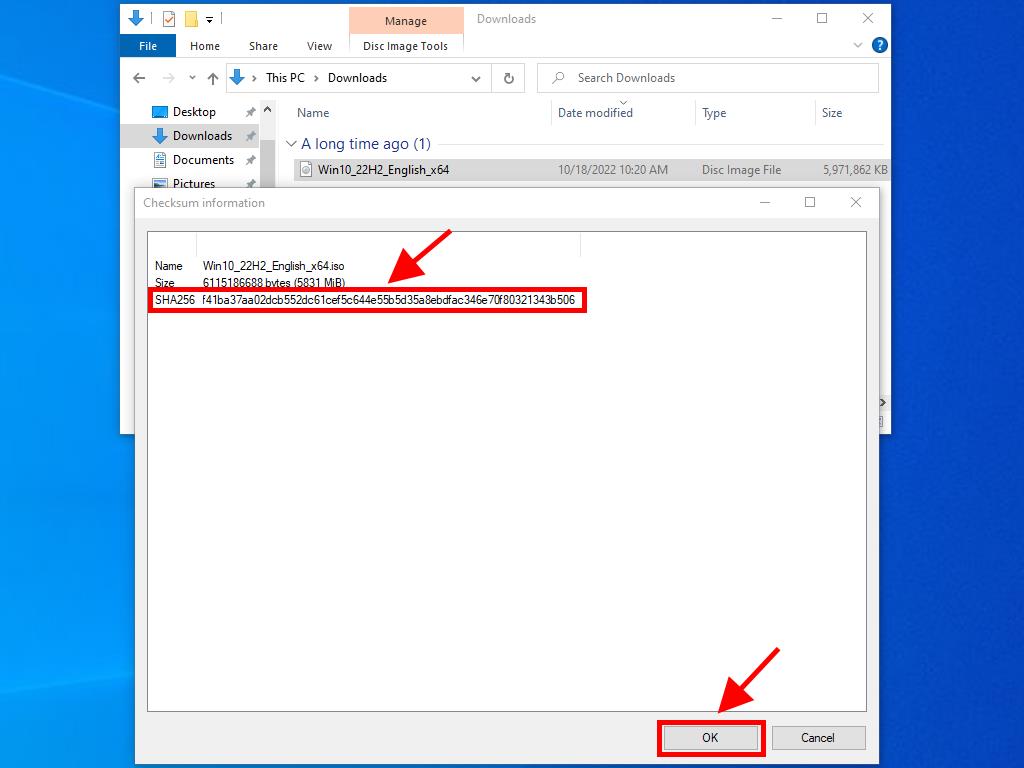- Once you have the process result, you can compare the SHA-256 with the one that appears on our website.