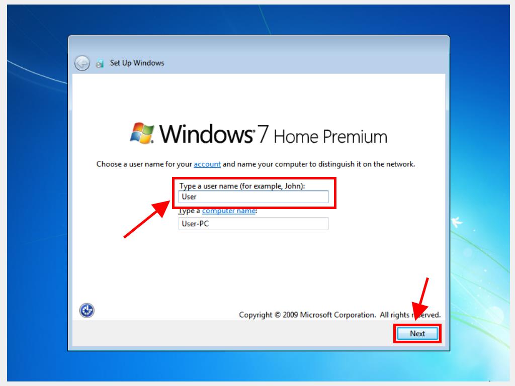 - After several restarts, it's time to personalise your PC. Start by entering a name for your PC and then click on Next.