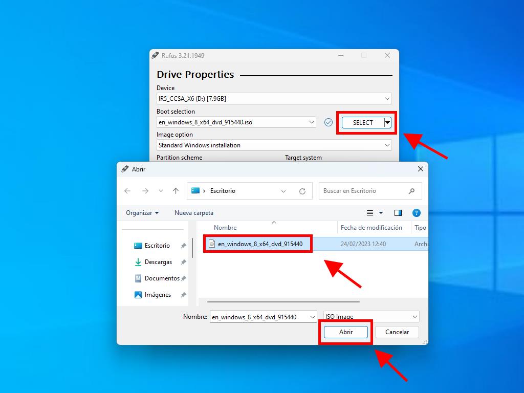 - Click Select and find the Windows 8 .iso file you want to configure.