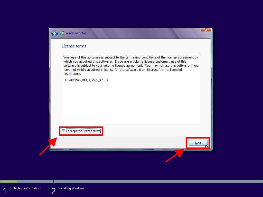 - Accept the license terms and click Next.