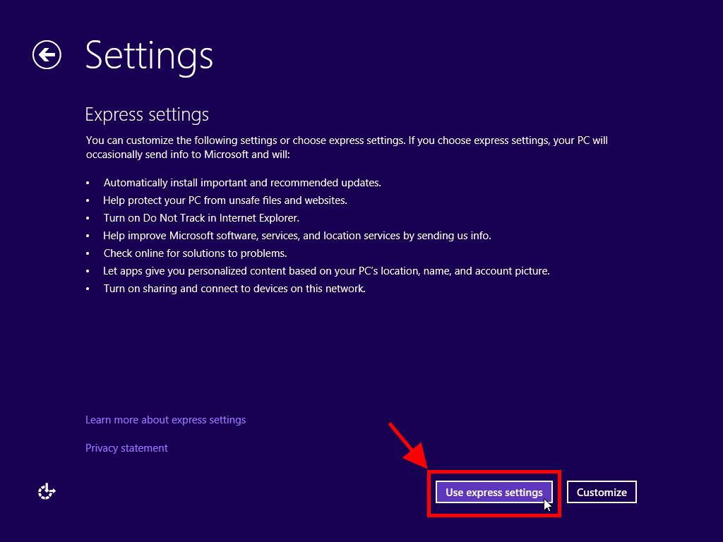 - Then, select Use Express settings.