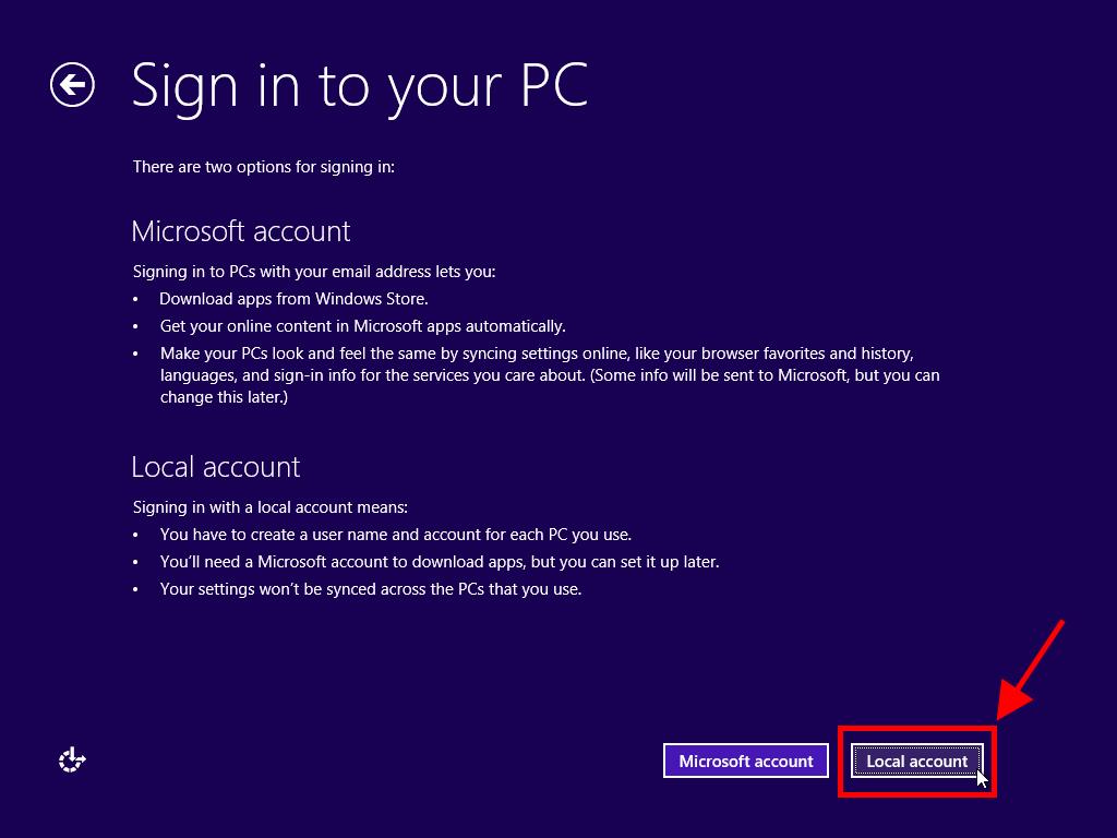 - Now, click Local account.