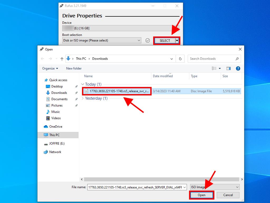 - Click Select and locate the Windows Server 2016 .iso file you wish to set up.