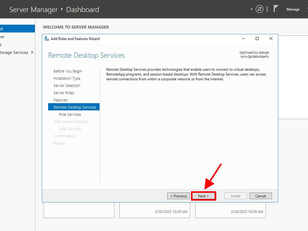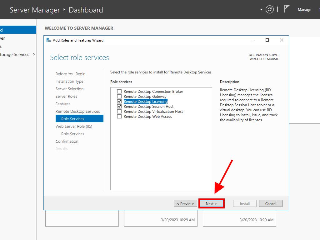 Install the Remote Desktop Licensing role service and Remote Desktop Session Host by following these steps: