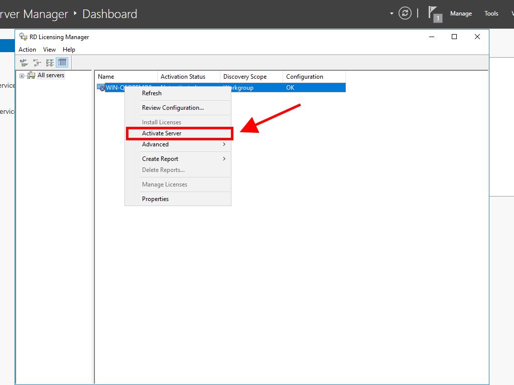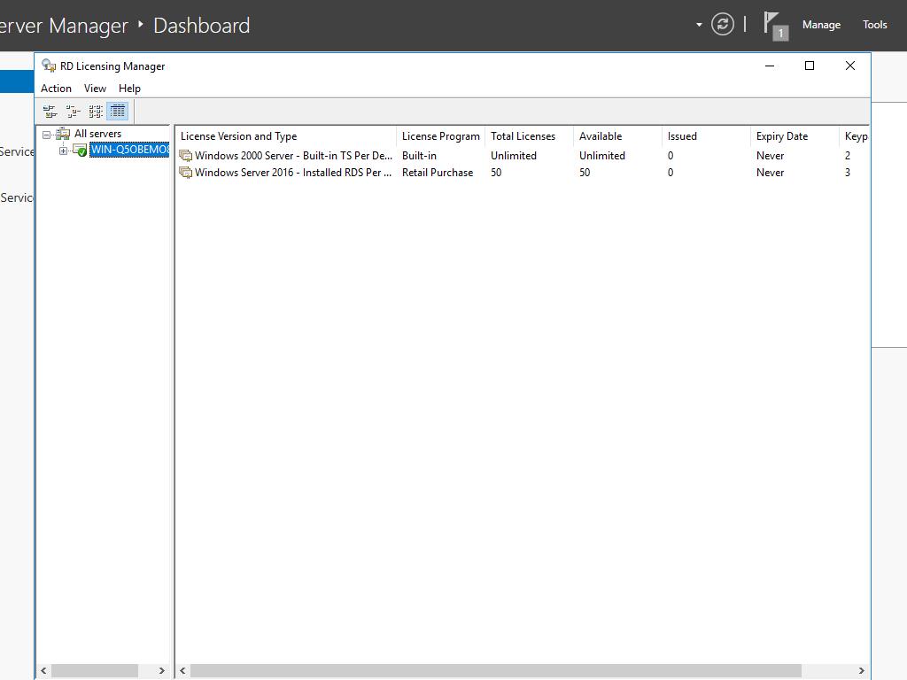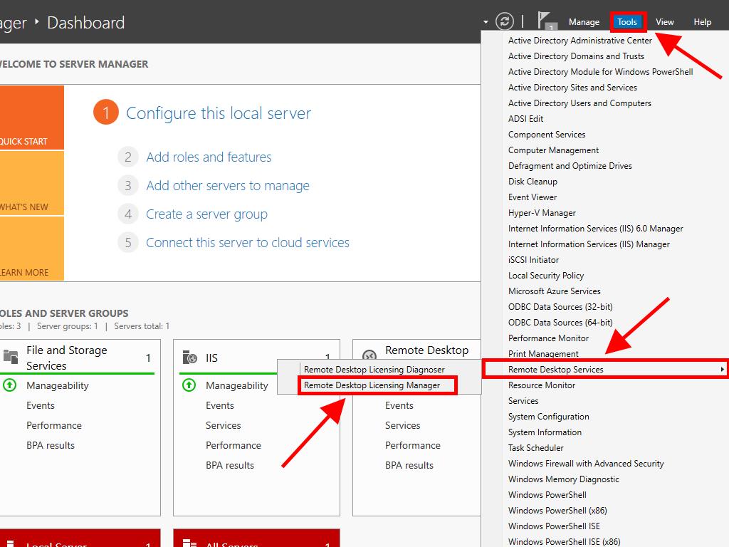 - Select Tools in the top-right corner, then select Remote Desktop Services and click Remote Desktop Licensing Manager.