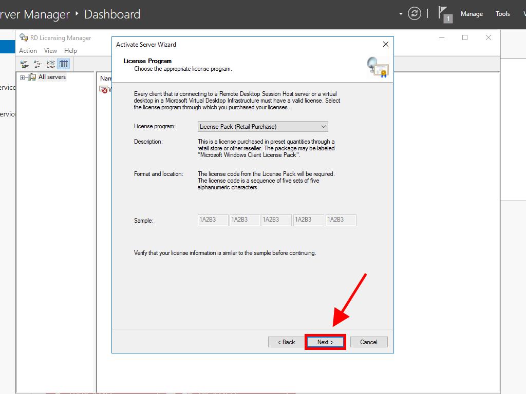 - Then, under License Program, select Retail Pack (Box or Preinstalled Product). Click Next.