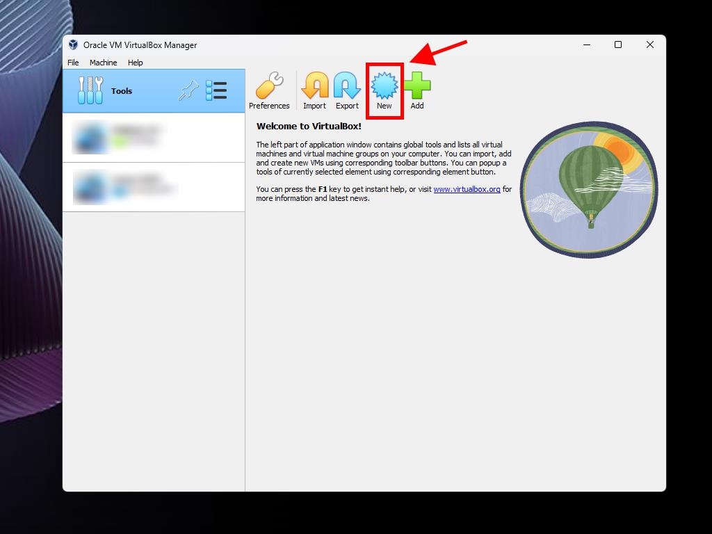 Here's how to create a new virtual machine (VirtualBox):