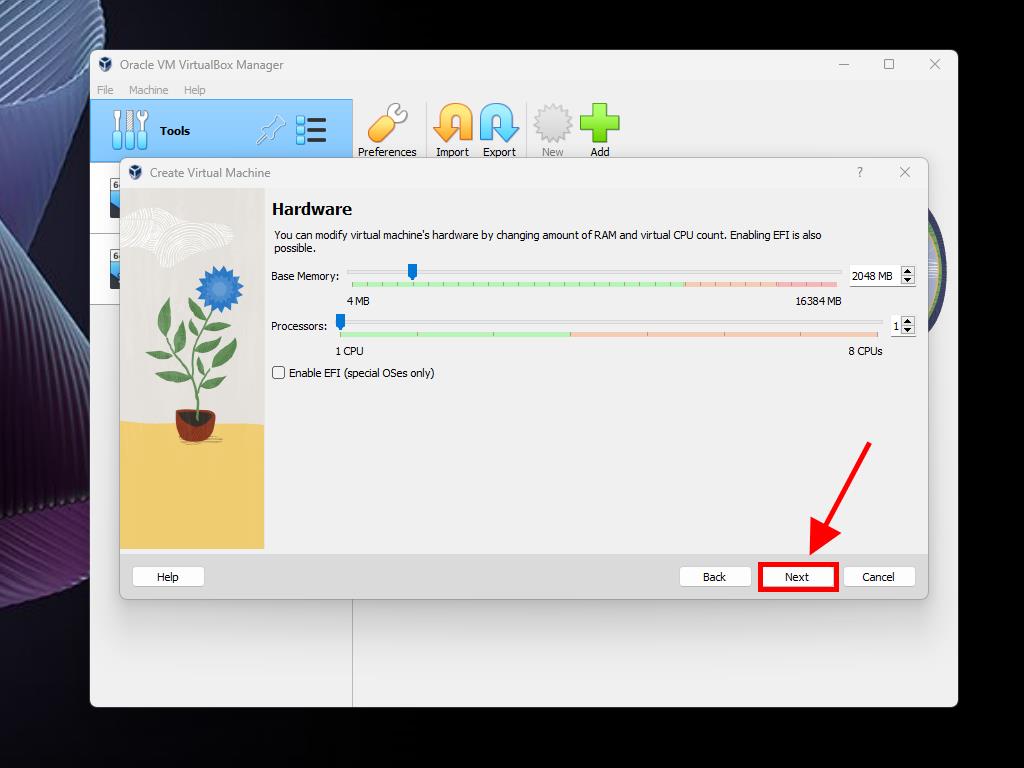 - Use a minimum of 4 GB of RAM and click Next.