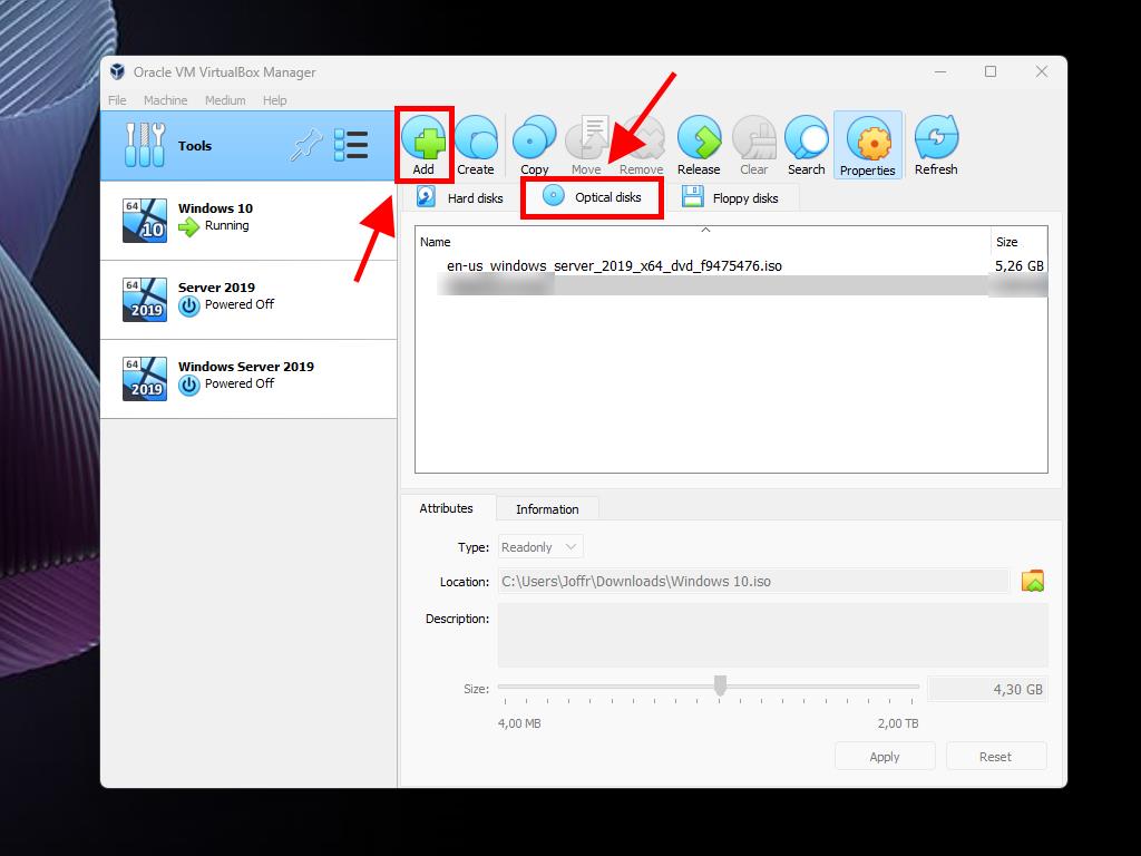 - Then select the Optical Disks tab and click Add.