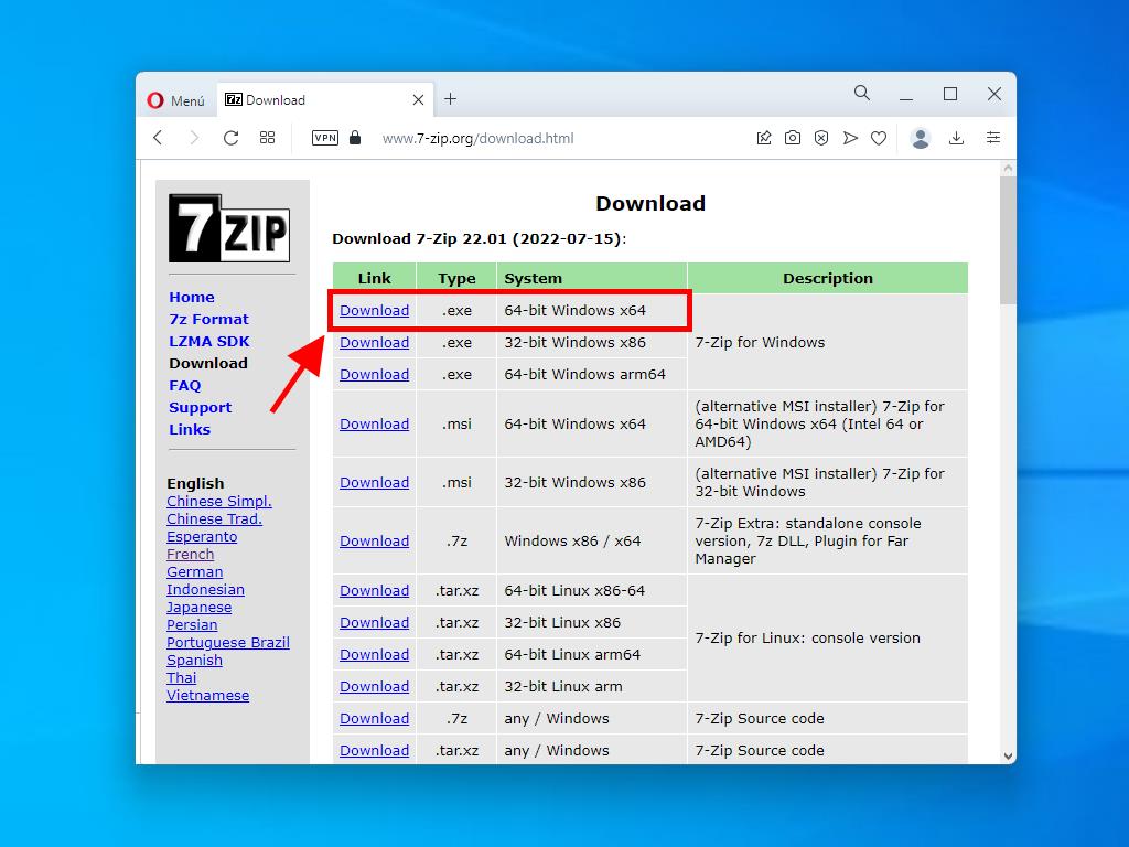 - Download the 7-Zip tool here and install it.