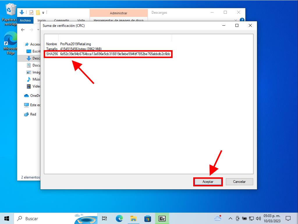 - Busca el archivo .iso de Office 2019 que ya has descargado. Haz clic derecho sobre él y luego selecciona 7-Zip > CRC-SHA > SHA-256.