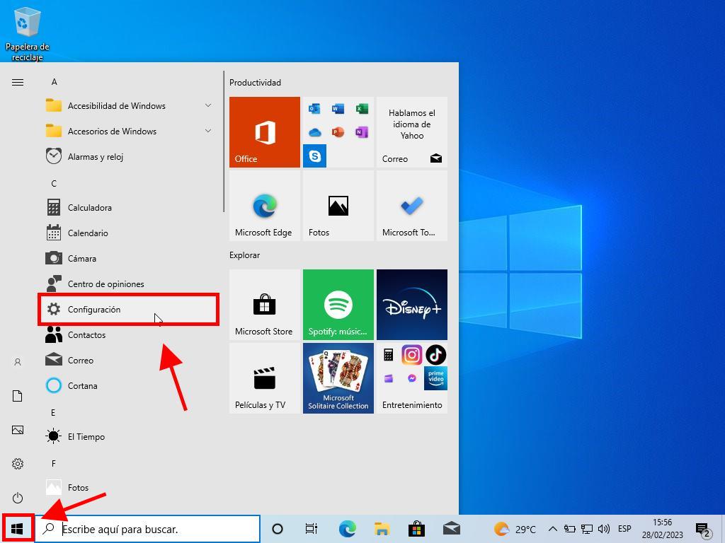- Presiona la tecla de Windows y, en el menú que se mostrará, selecciona Configuración.