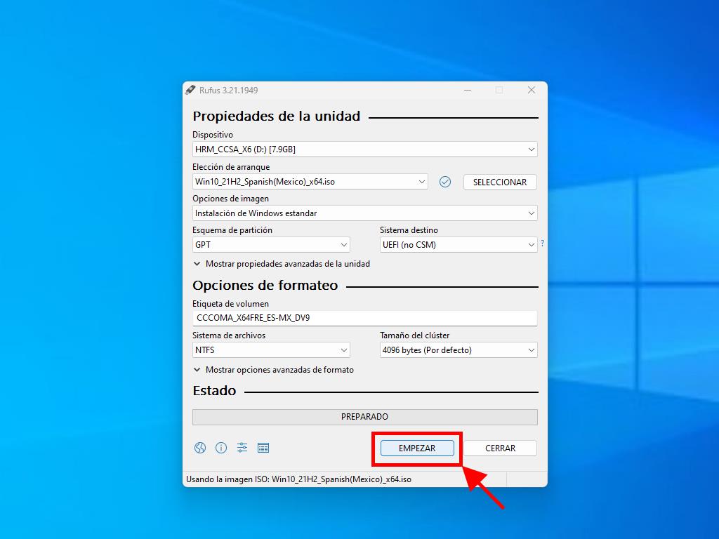 Nota: Si tu PC es un modelo que salió después del año 2020 debes seleccionar la opción esquema de partición GPT. Pero si tu PC es de un modelo anterior al año 2020 debes seleccionar MBR.