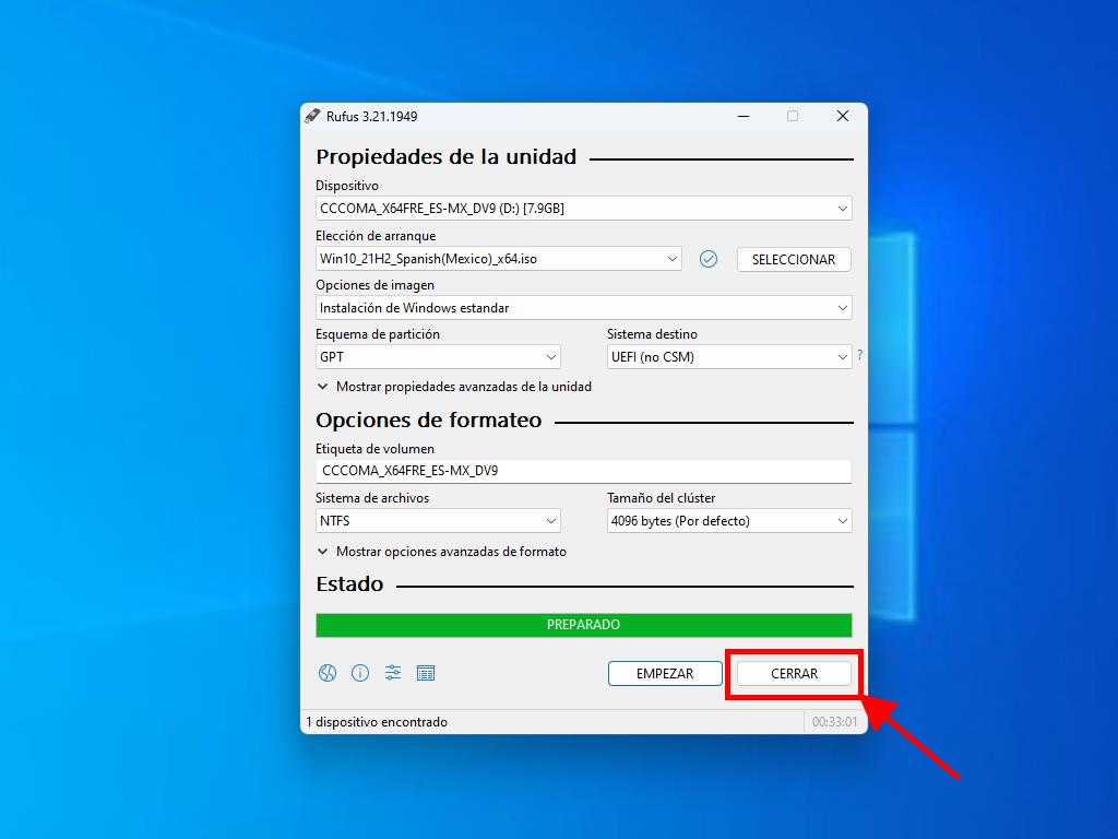 Nota: Vas a necesitar un dispositivo USB con una memoria mínima de 8 GB.