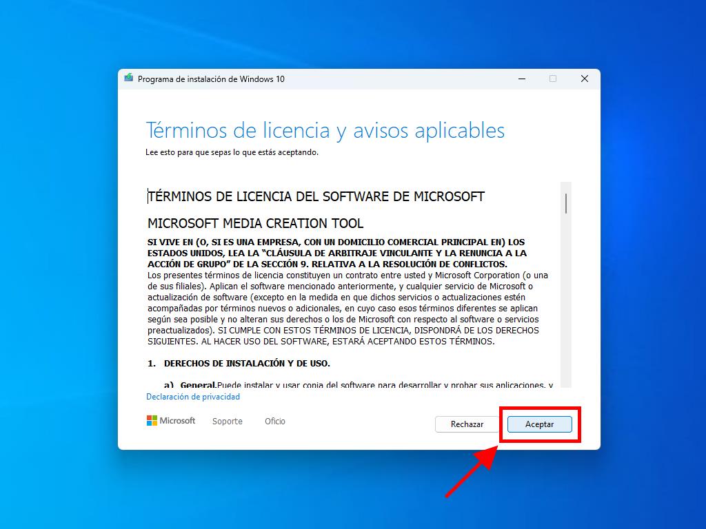 - Selecciona Crear medios de instalación y haz clic en Siguiente.