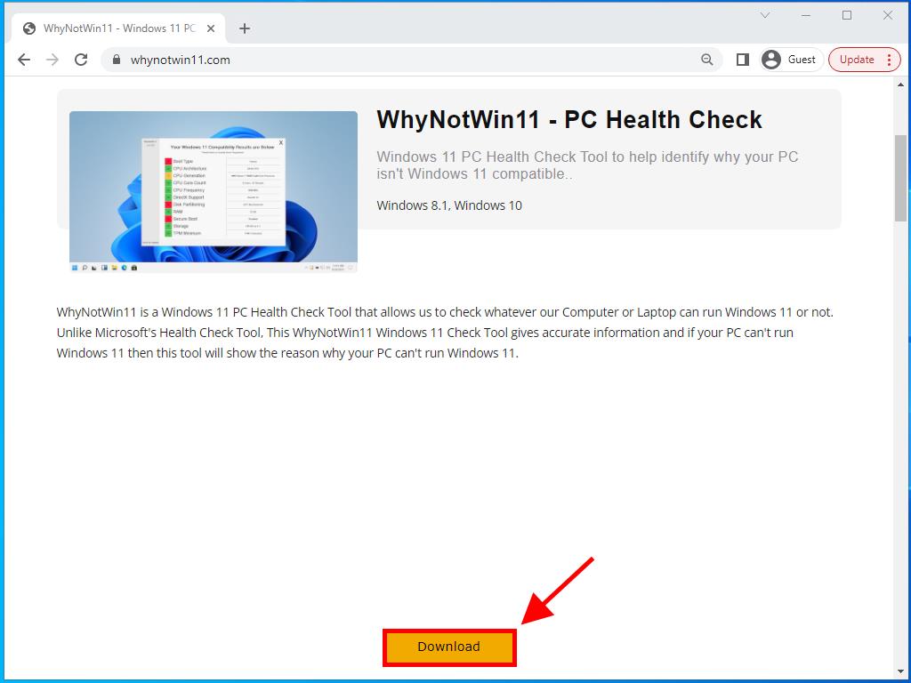 - WhyNotWin11: Esta es una aplicación que puedes Descárgarla gratis aquí. Al ejecutarla te dirá si tu PC es compatible o no.