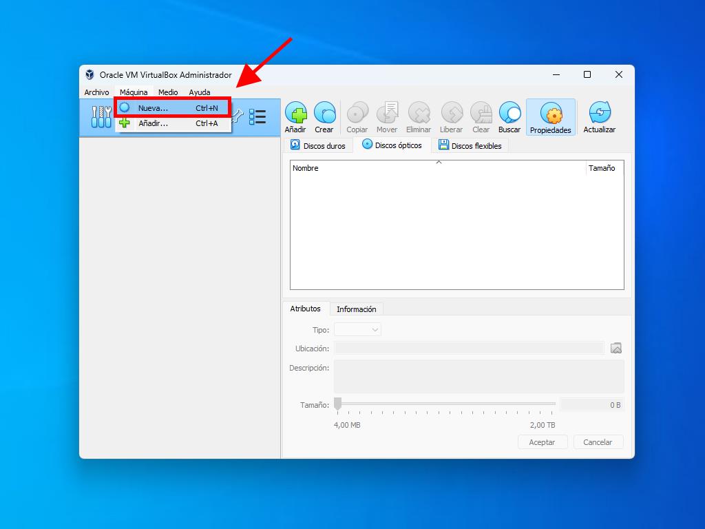 Así es cómo puedes crear una nueva máquina virtual (VirtualBox):