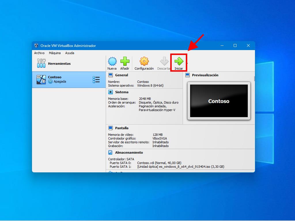 - Enciende la máquina virtual haciendo clic en Iniciar.