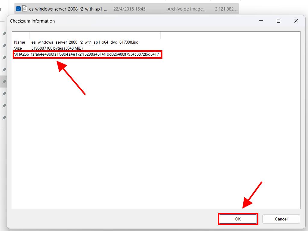 - Una vez que tienes el resultado del proceso, puedes comparar el SHA-256 con el que aparece en nuestro sitio web.