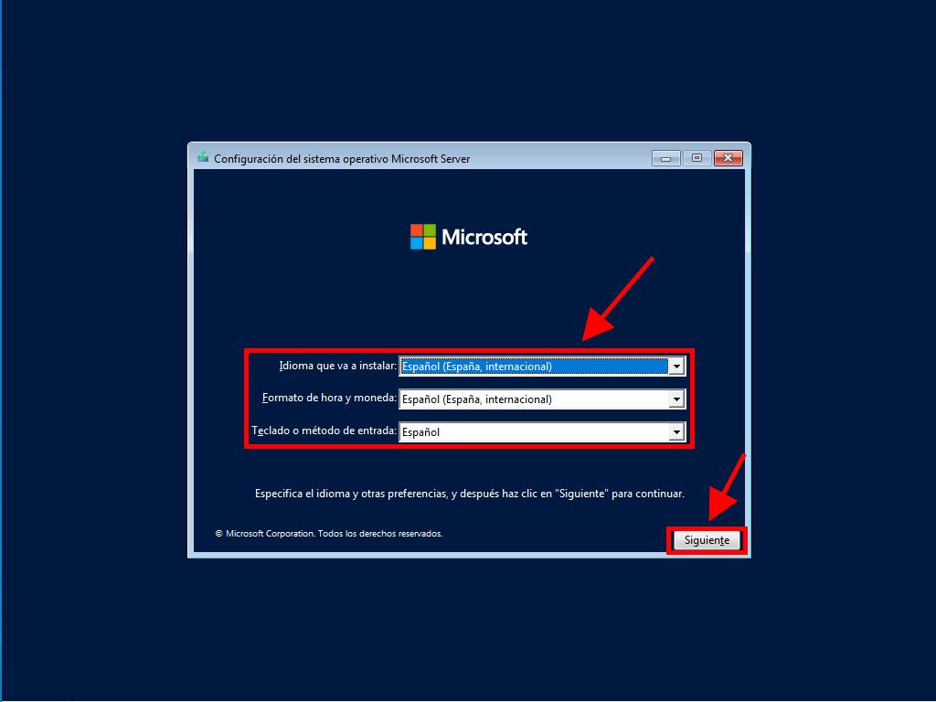 - Una vez que estés en el programa de configuración, selecciona tu idioma, formato de hora, moneda y teclado o método de entrada, y haz clic en Siguiente.