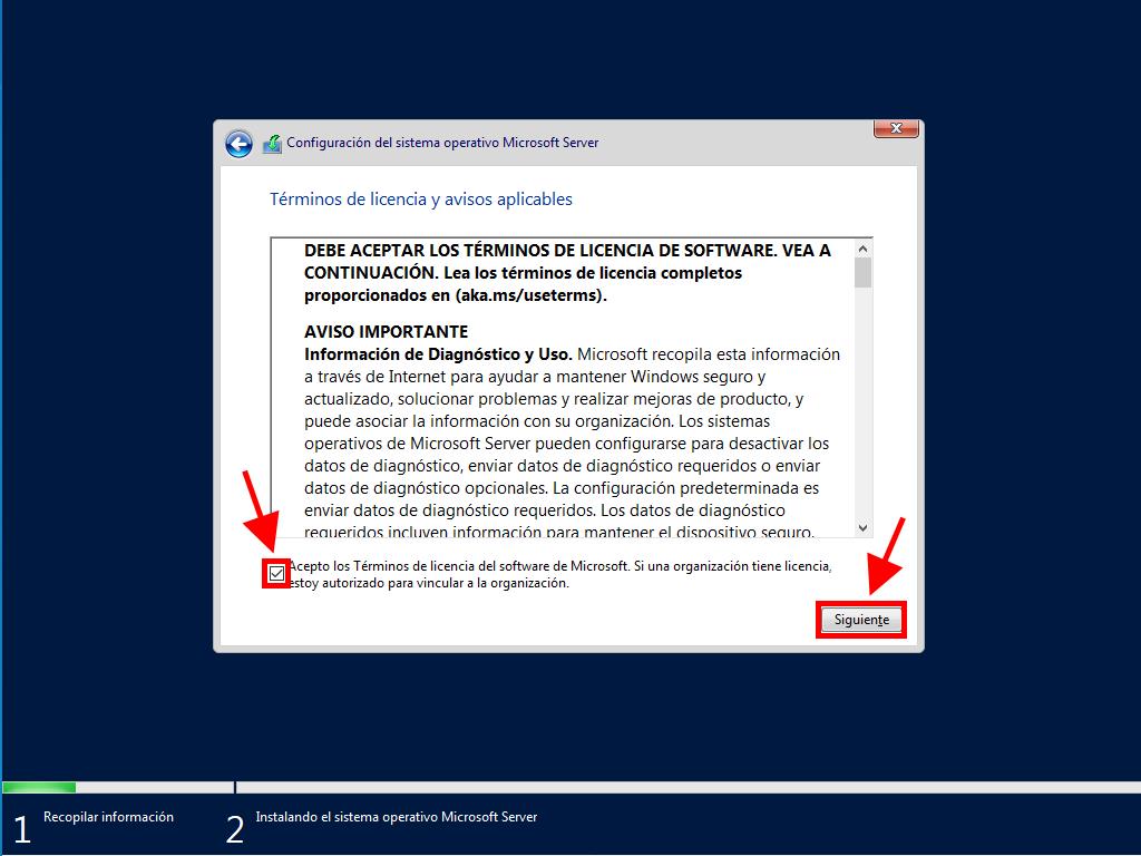 - En el siguiente recuadro, acepta los términos y condiciones y haz clic en Siguiente.