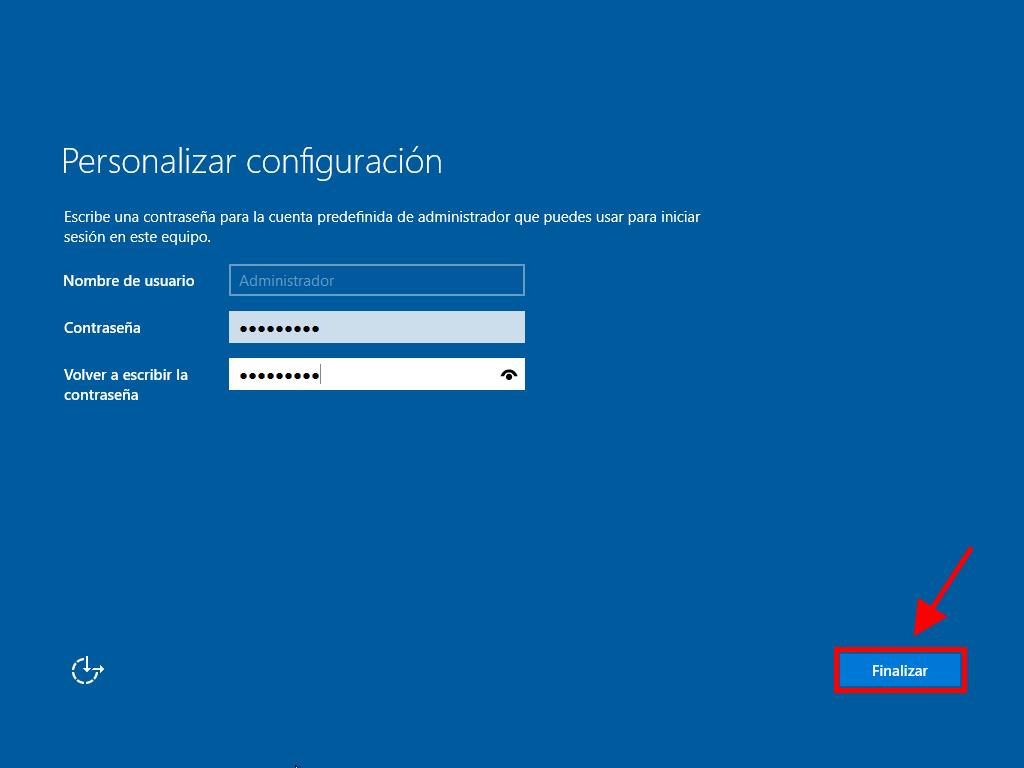 - A continuación, ingresa una contraseña que sea fácil de recordar y haz clic en Finalizar.